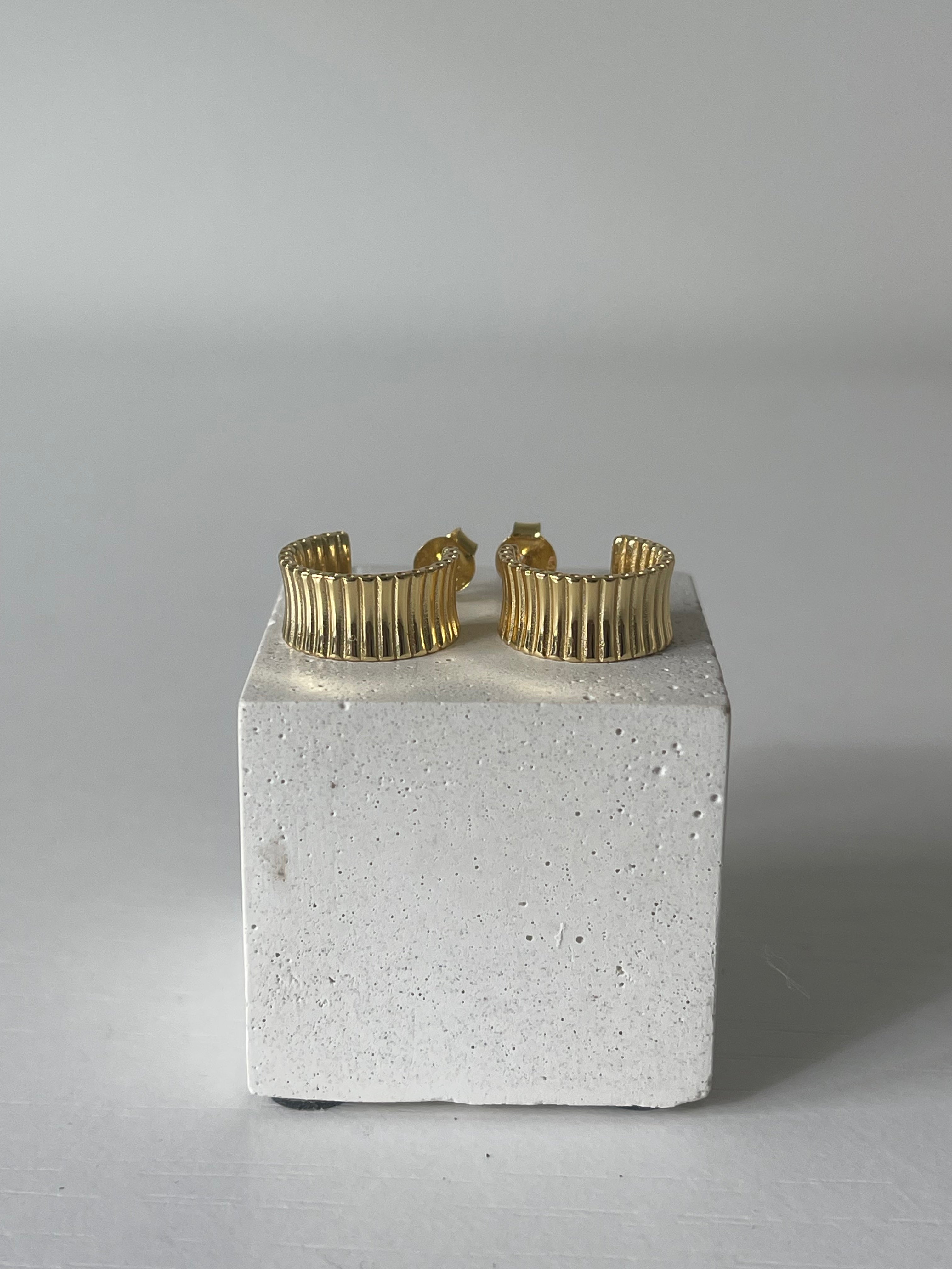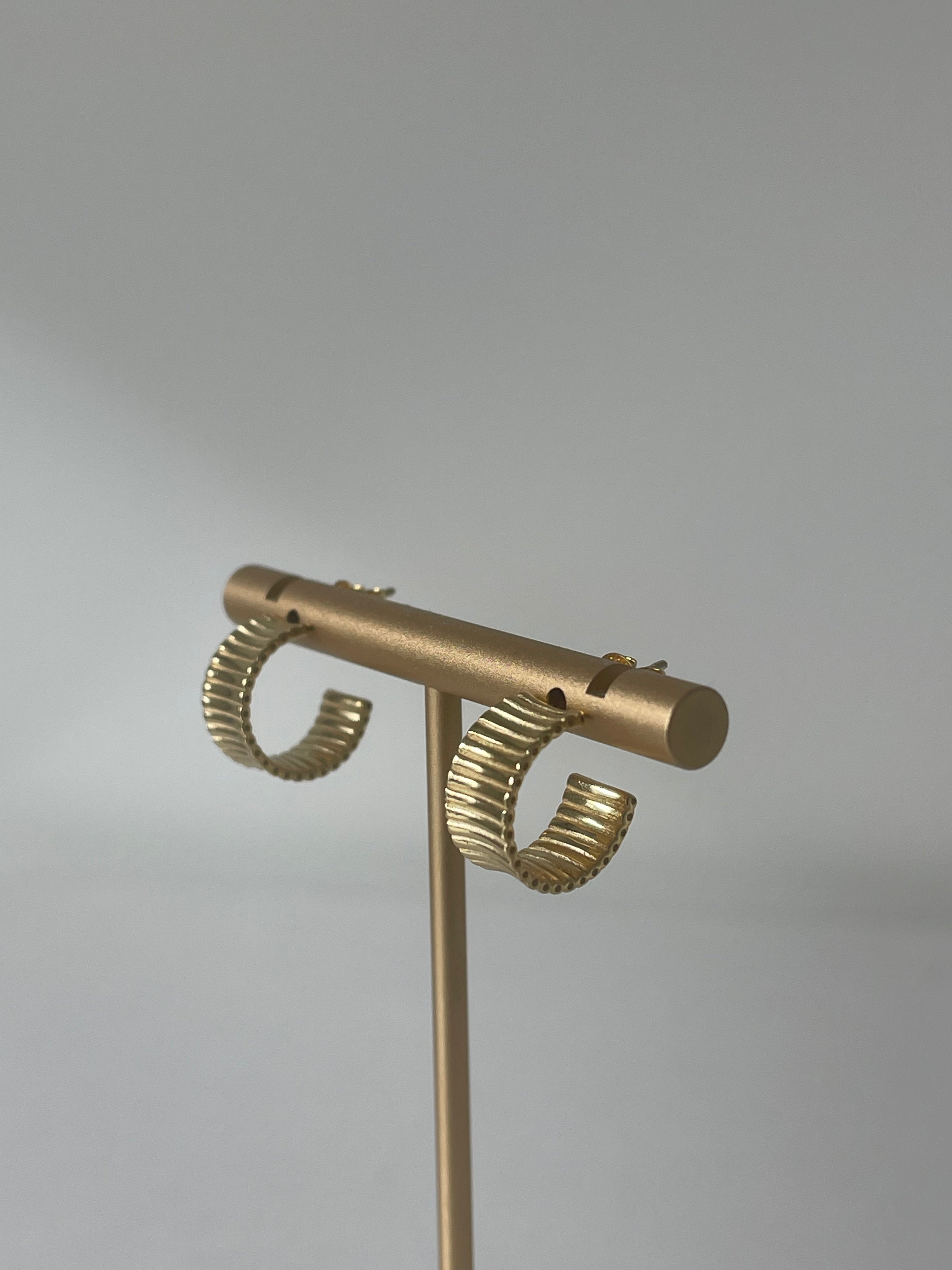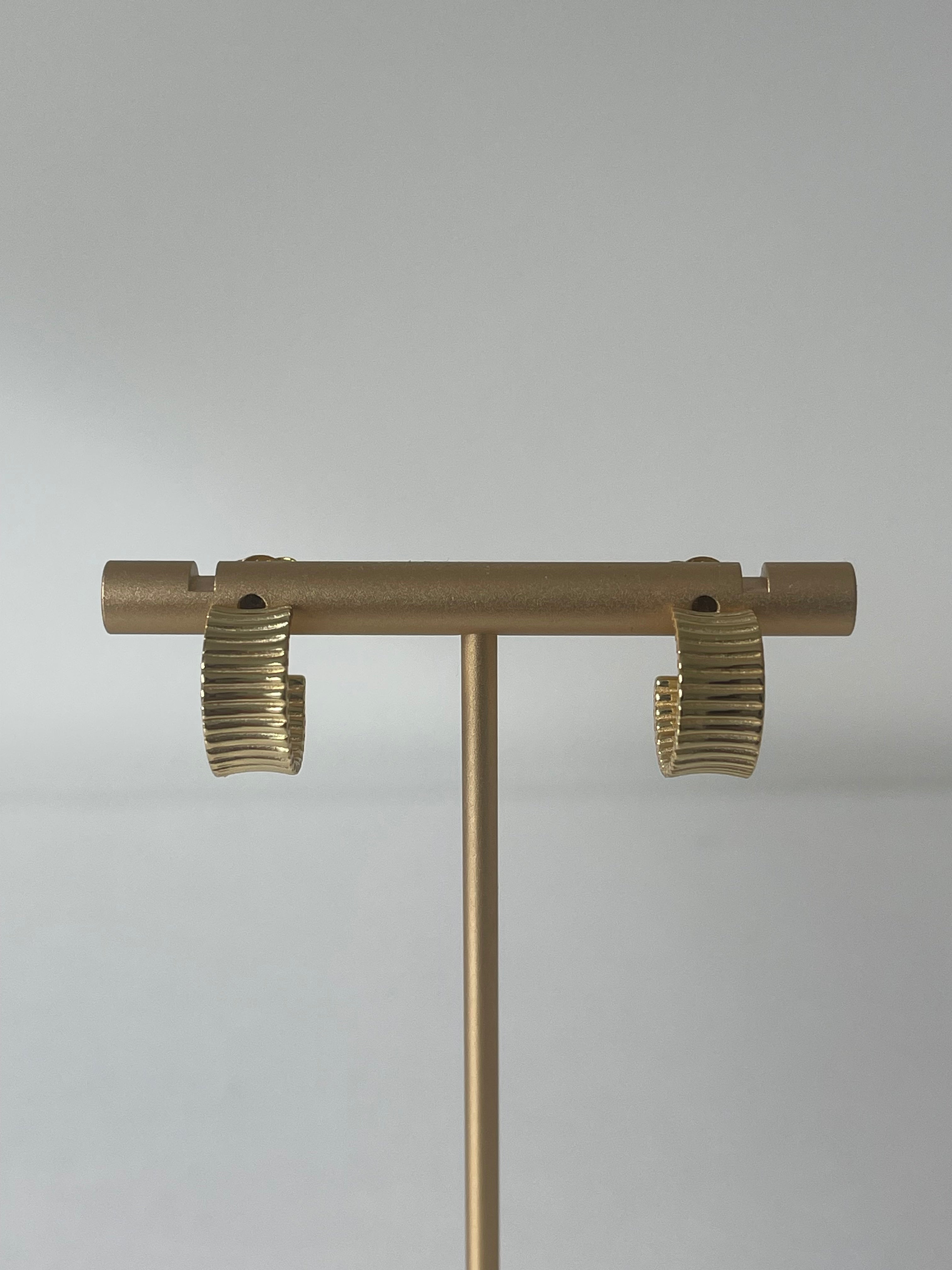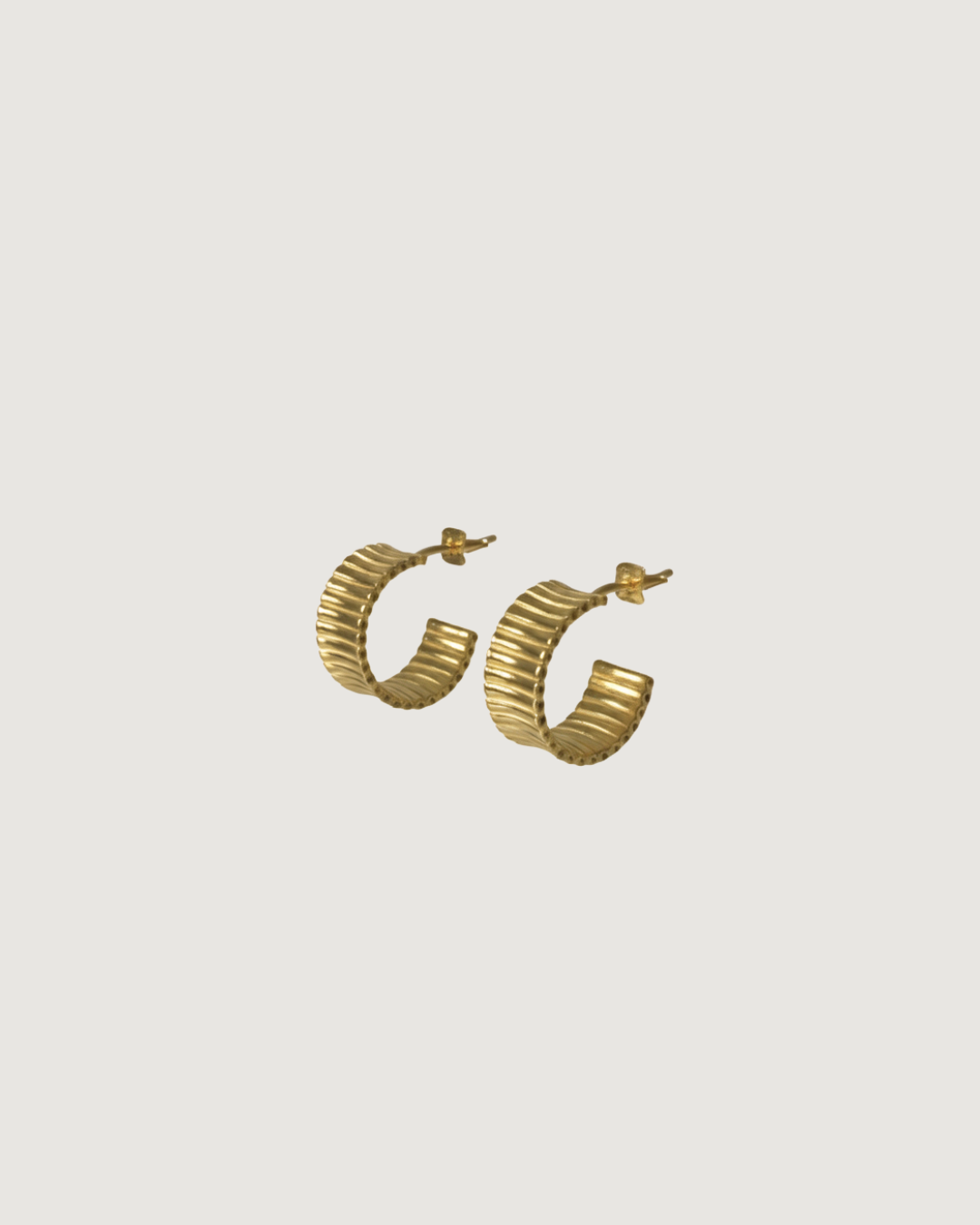 The Sylvie hoops are featured in 14K solid gold, for those that prefer a lighter gold tone. The ribbed hoop is designed with elegance and durability, making them perfect for everyday wear. They are waterproof and hypoallergenic.