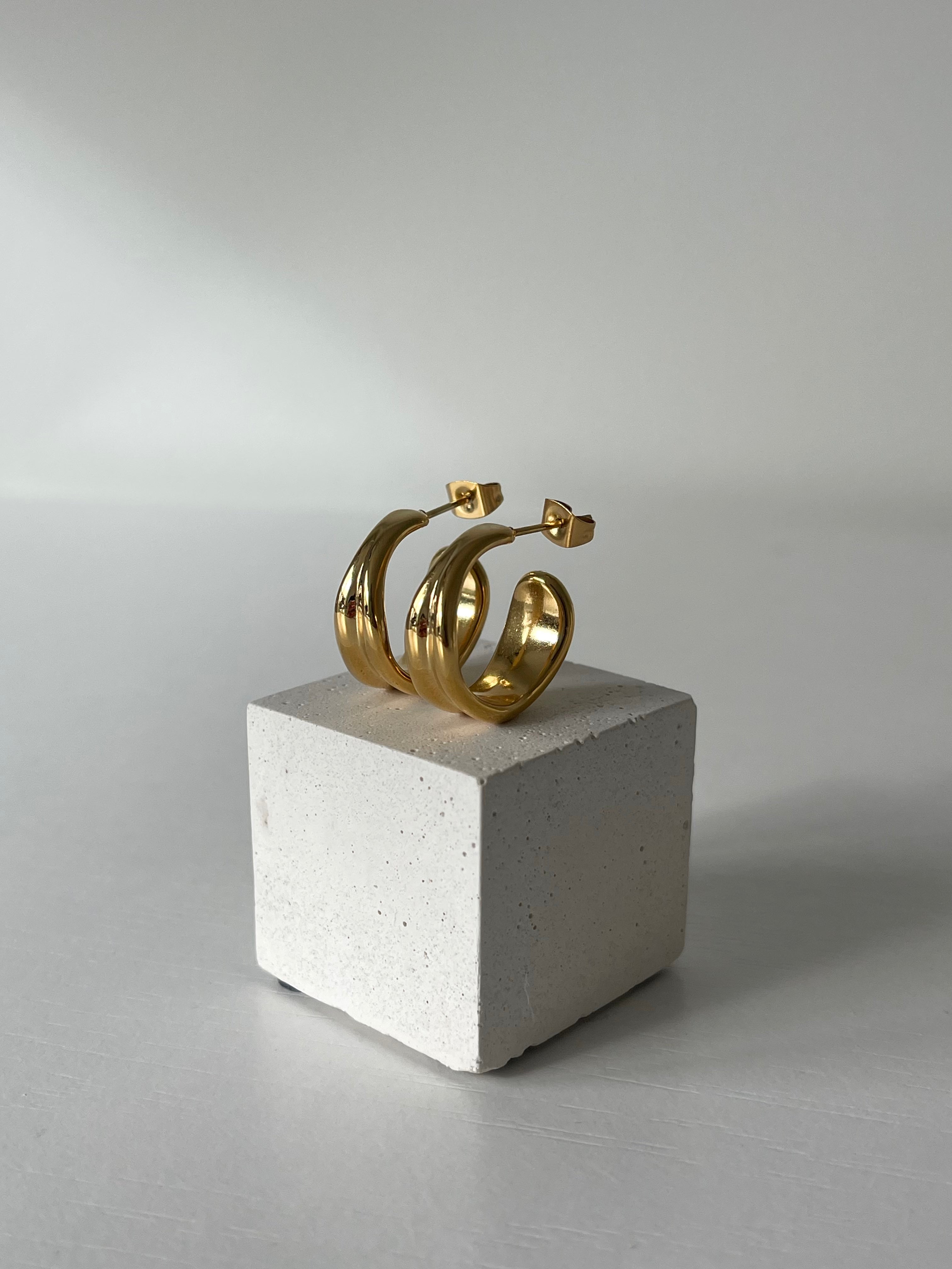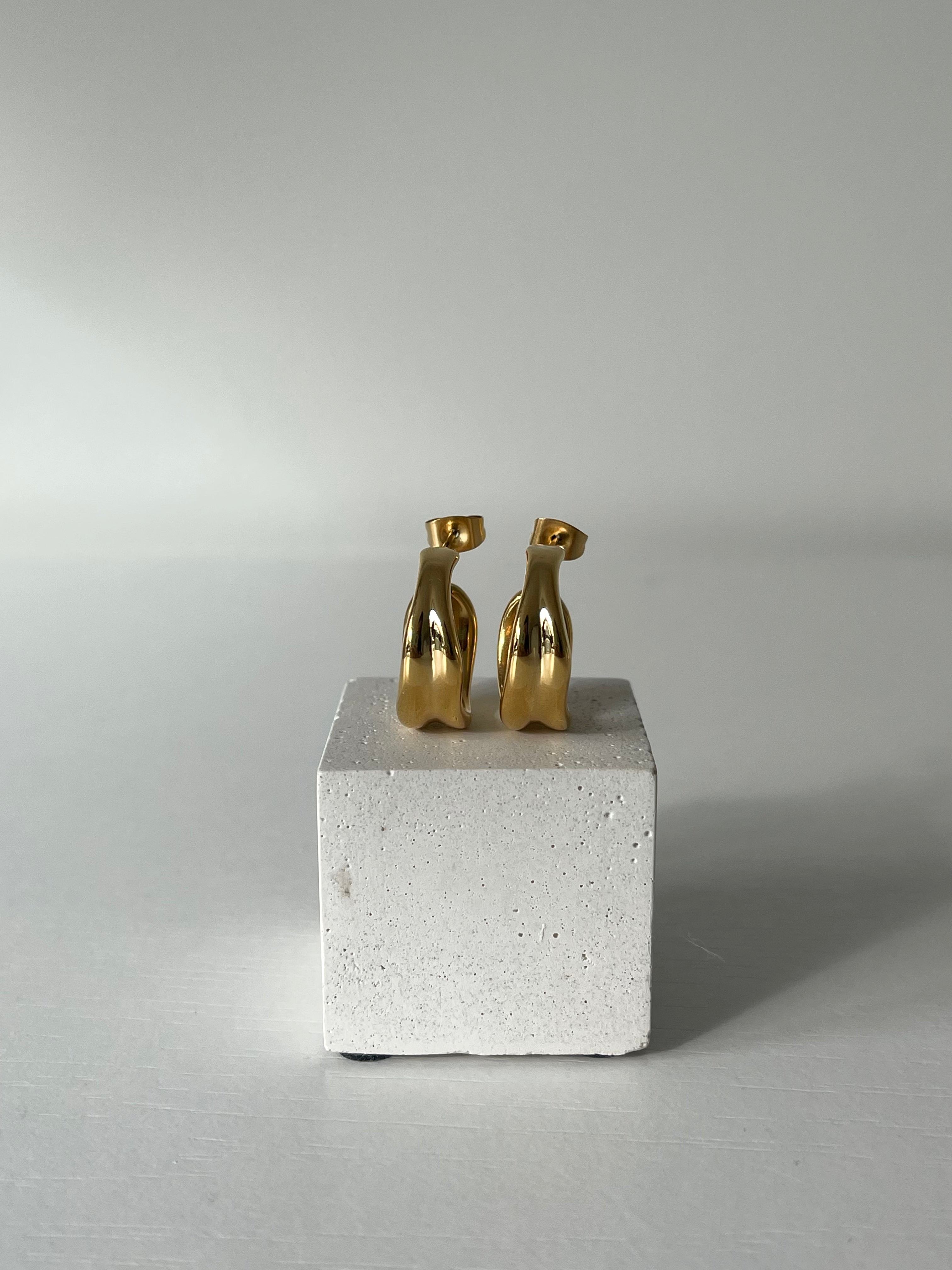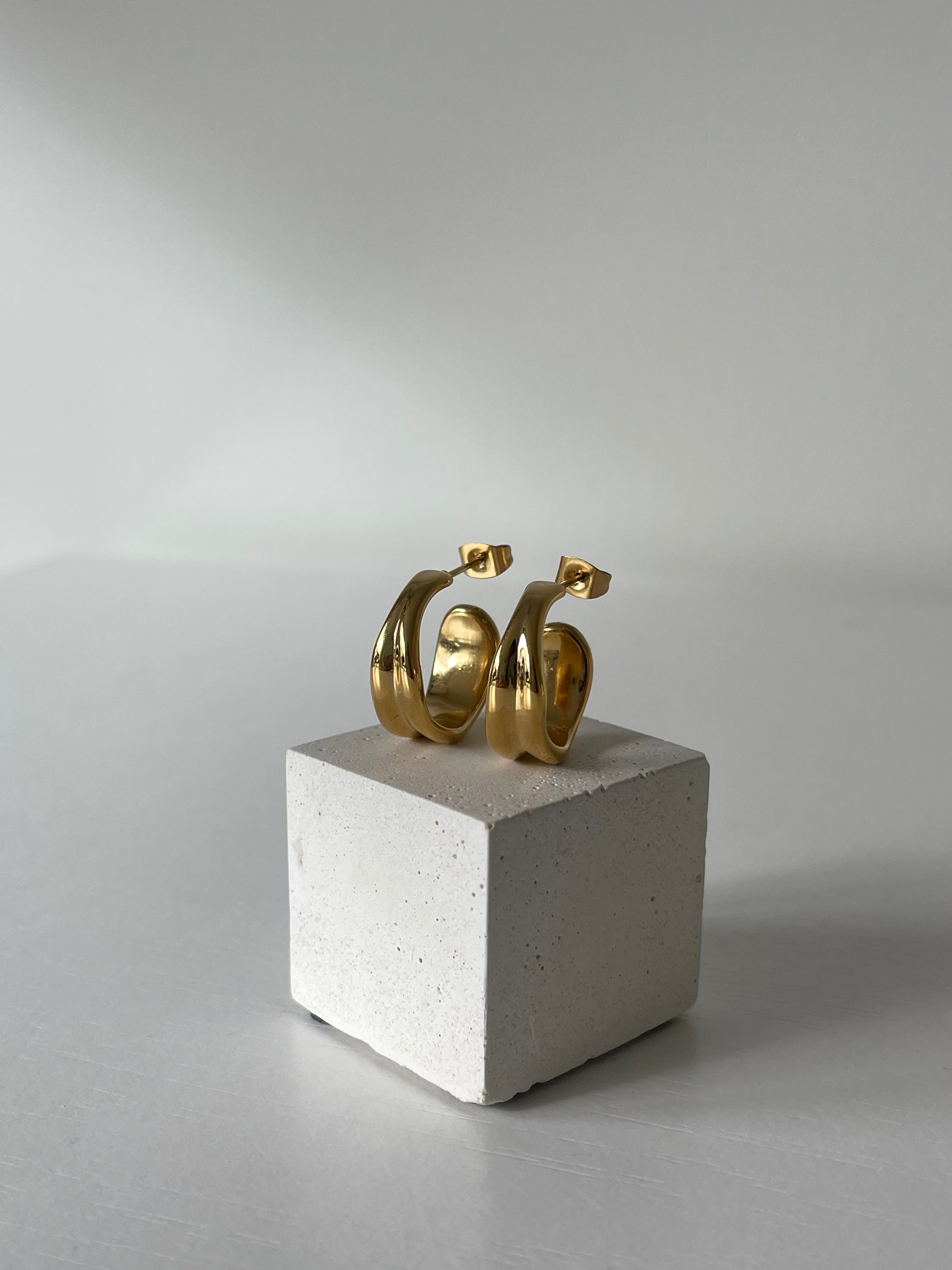 These lightweight, asymmetrical hoops add a touch of modern elegance to any outfit. Crafted with 18K gold-plating, 925 sterling silver and completely waterproof, they're perfect for everyday wear.