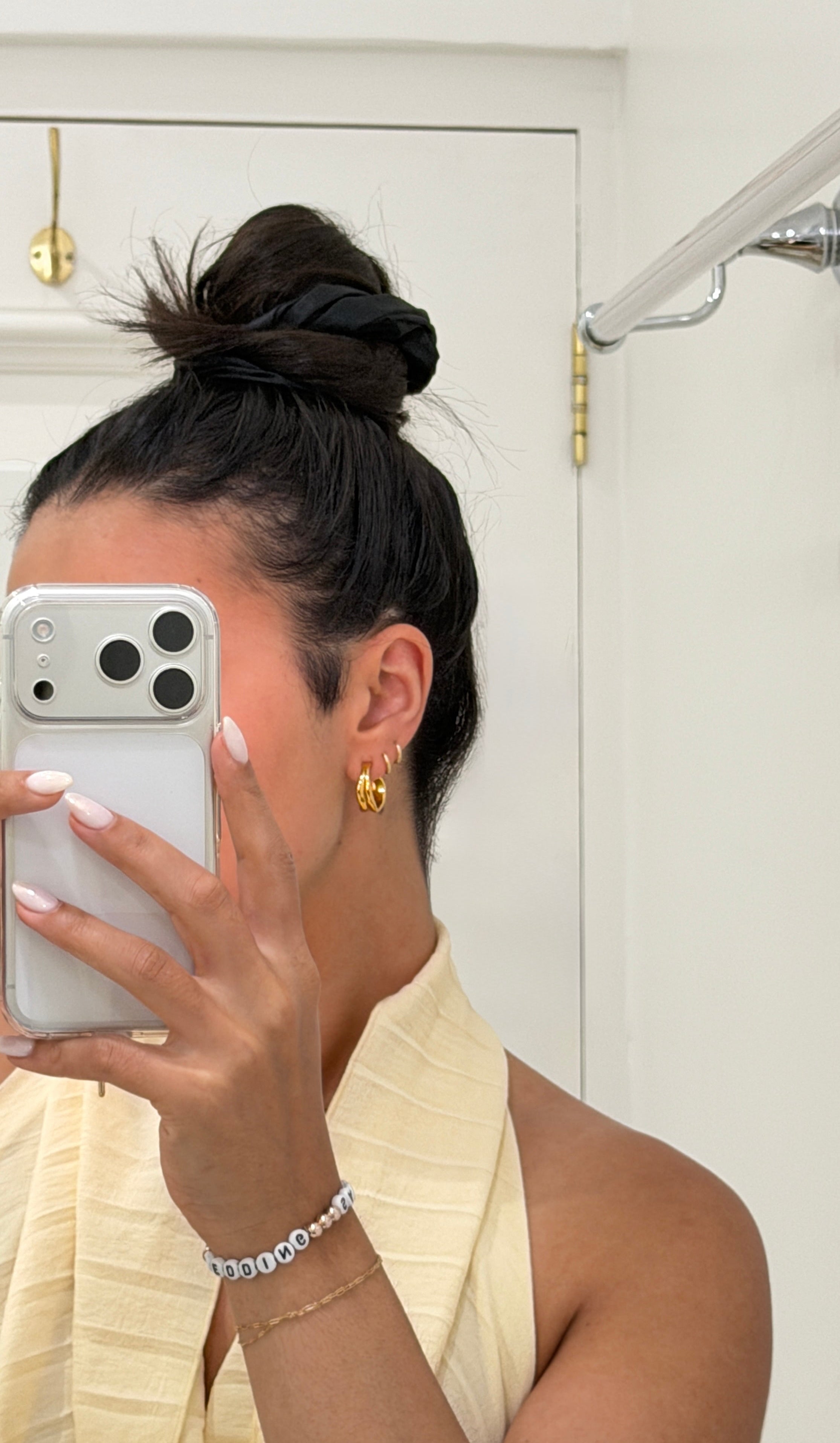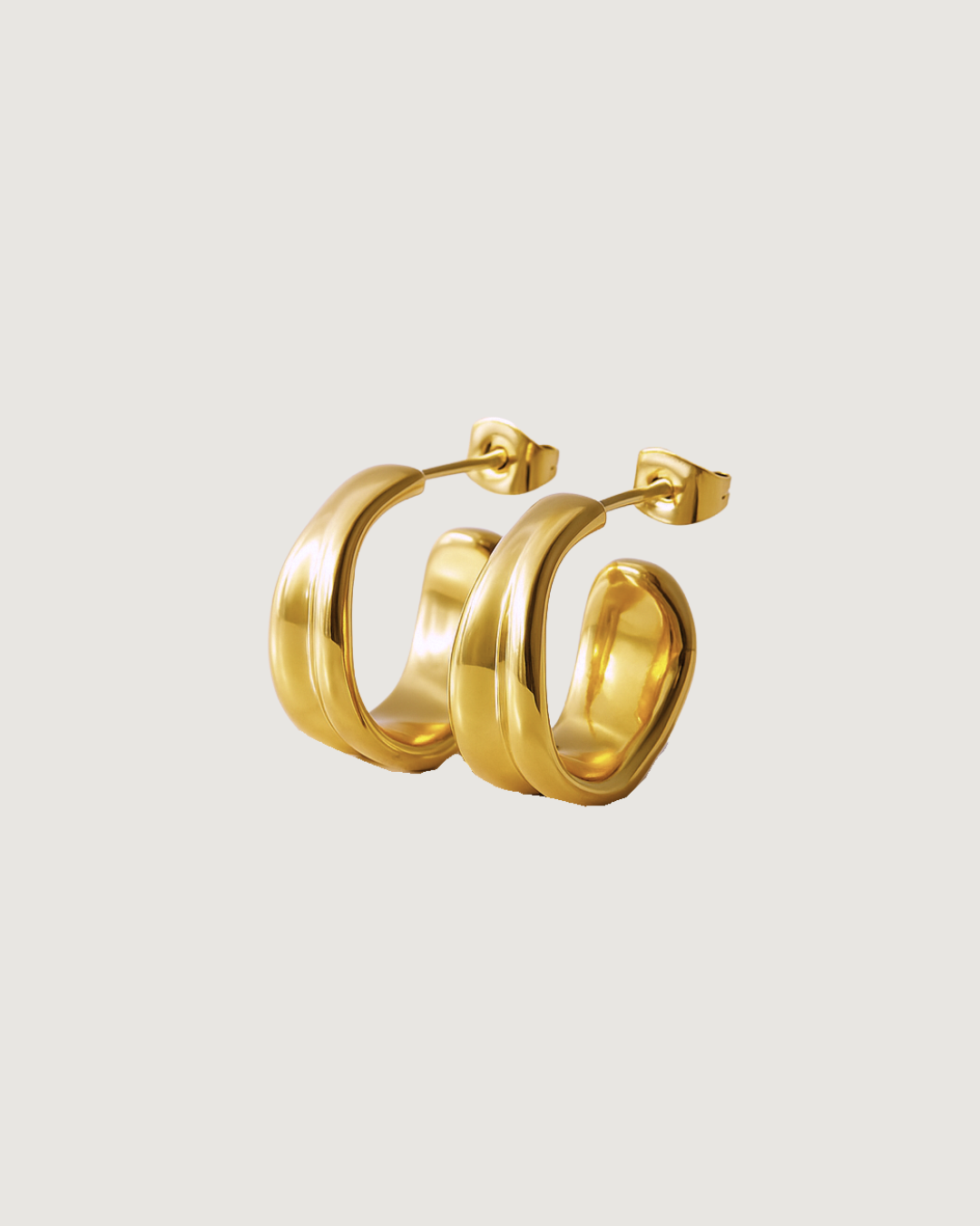These lightweight, asymmetrical hoops add a touch of modern elegance to any outfit. Crafted with 18K gold on stainless steel and completely waterproof, they're perfect for everyday wear.
