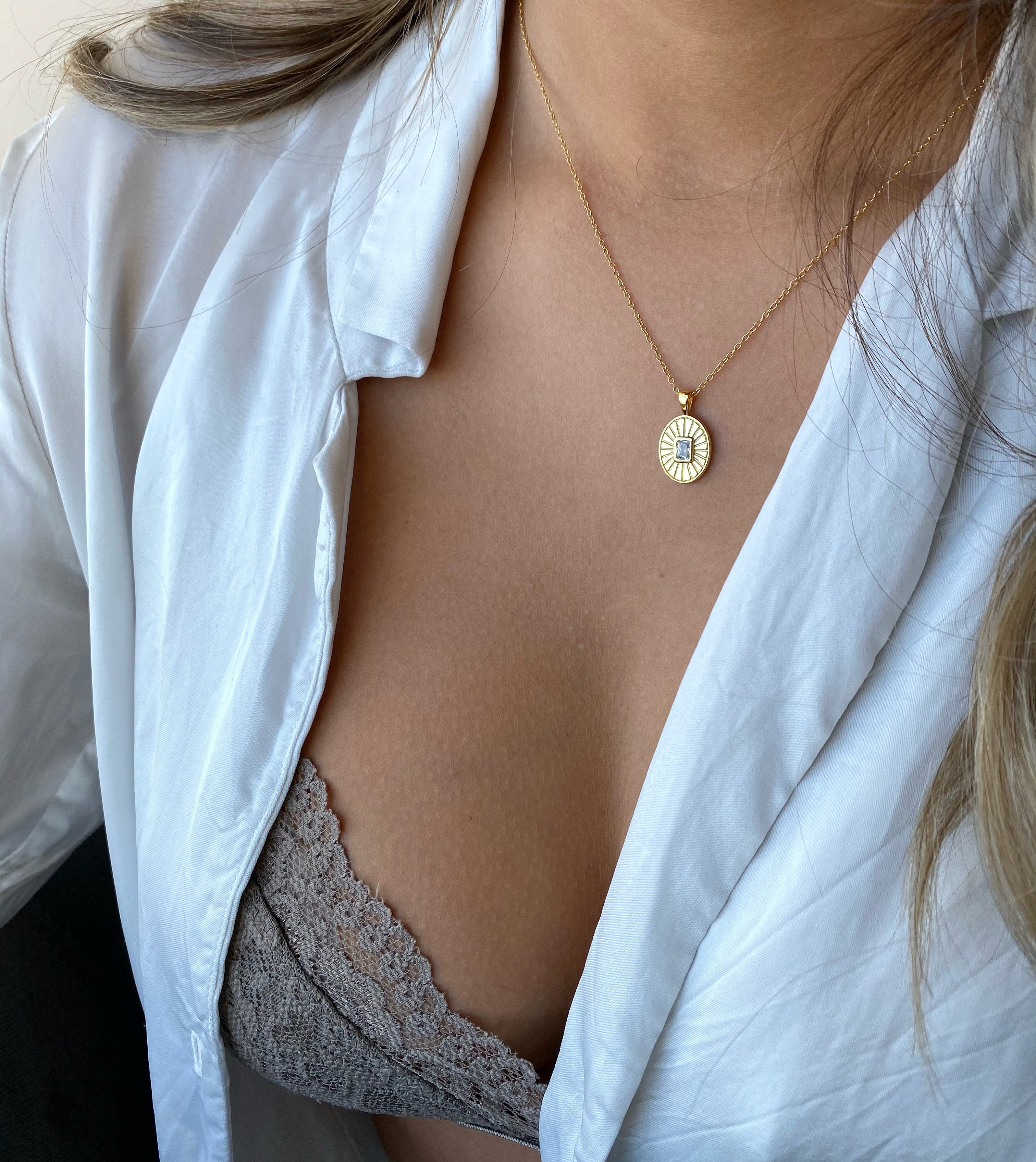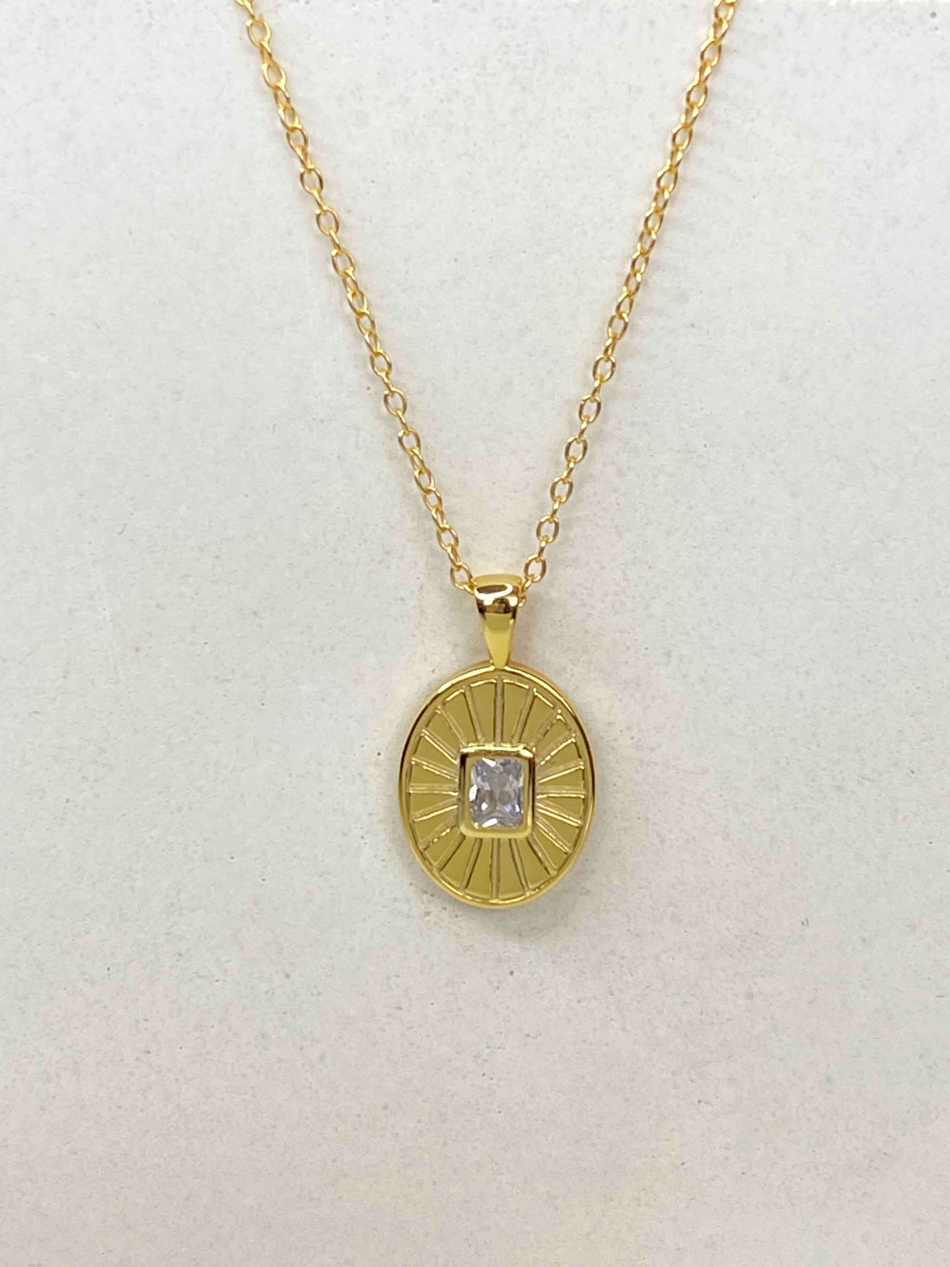 A vintage oval pendant embellished with a squared stone. Perfect to wear alone or layer.