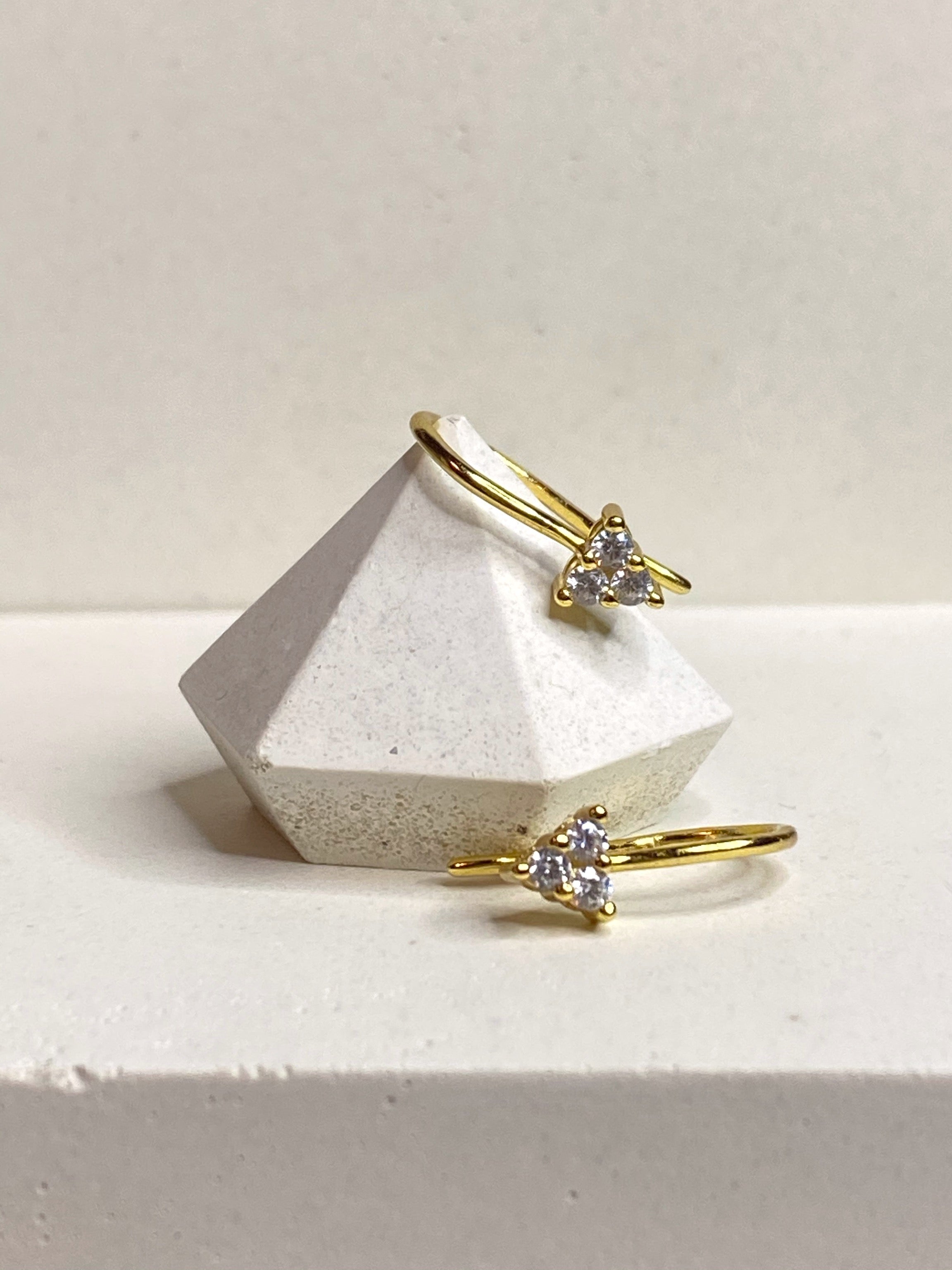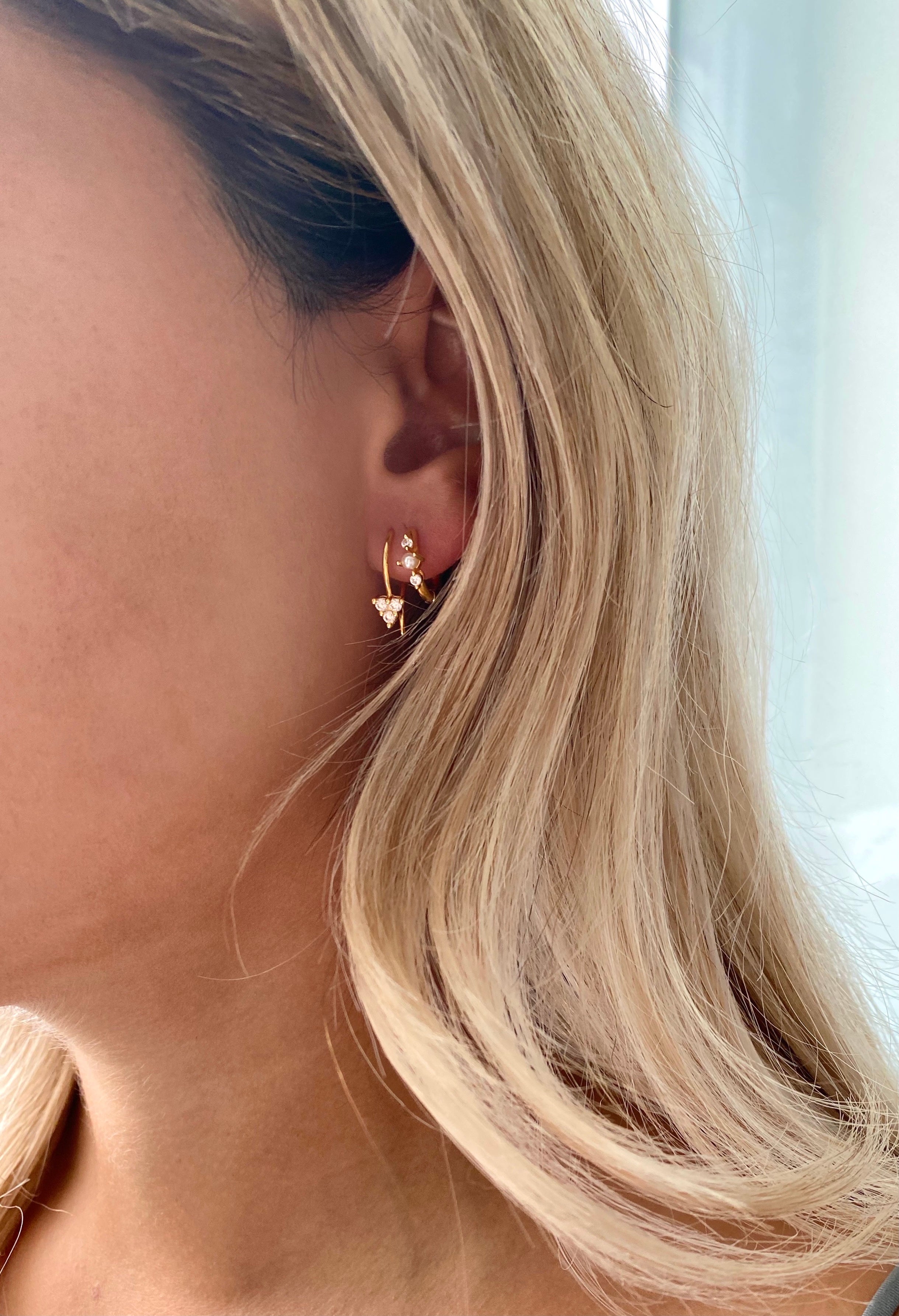 Our featured triangle drop earrings. Made with a well-designed loop that requires no closure. An effortless style earring that pairs well with our featured Merveilles huggies.